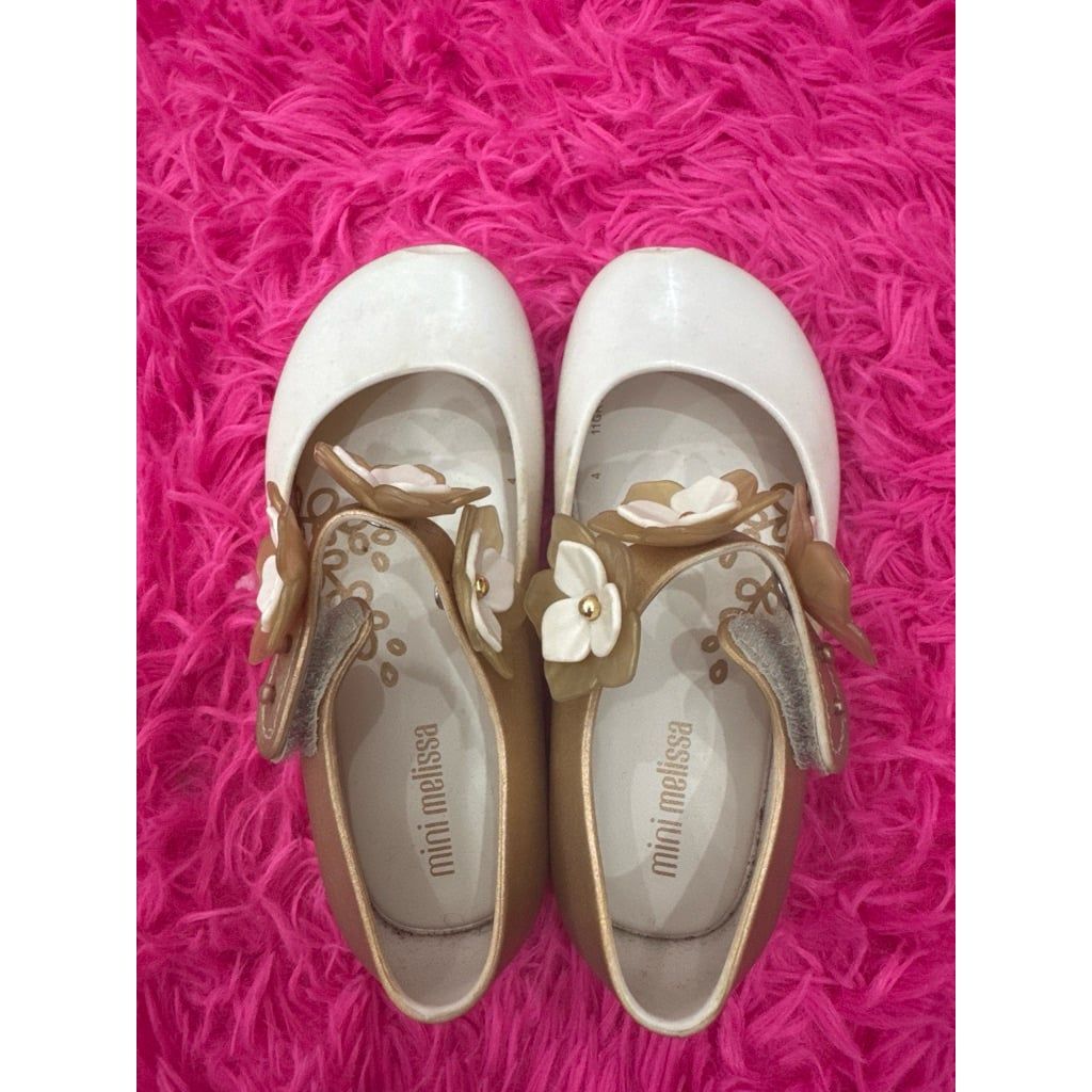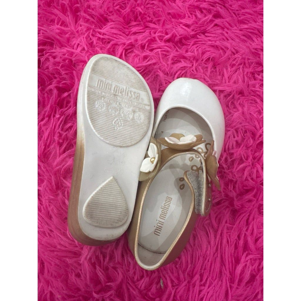 Giày búp bê bé gái Melissa Ultragirl Flower màu Beige/ Gold size 25.26 used